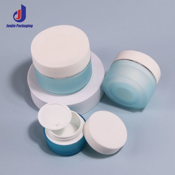 15g 20g 30g 50g Face Cream Blue Jar Matte PP Plastic Cream Jar With Golden Thread Lid Images |